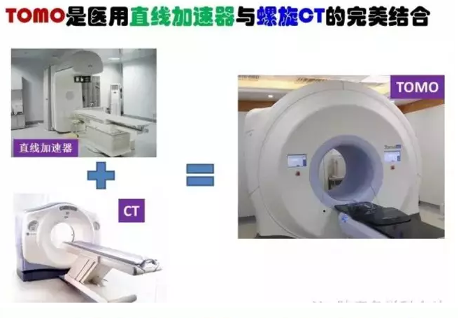 TOMO(Tomotherapy)又稱螺旋斷層放療或托姆刀放療,是2003年正式進入臨床的一種全新概念的放療技術。簡單理解,它是醫(yī)用直線加速器和螺旋CT的結合體,即把直線加速器放在CT的滑環(huán)機架上,使用扇形X光束實施照射。