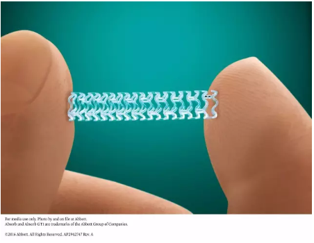 盡管血管支架的意義廣受推崇,但血管支架的永久性植入本身仍然是無法回避的遠(yuǎn)期風(fēng)險(xiǎn)源,因此,生物全可降解支架就成了下一步探索突破的焦點(diǎn)。在這個(gè)方向上,雅培走在了世界的前端。2011年,雅培的生物可降解支架(BRS)Absorb在歐洲上市;2016年在美國獲批上市。