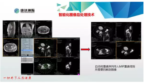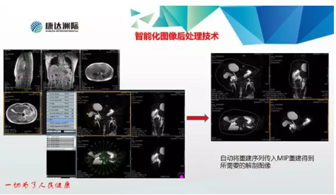 康達“智速”磁共振采用的智能化圖像后處理技術(shù)無需人工干預(yù),自動將重建序列傳入MIP重建得到所需要的解剖圖像。在AI技術(shù)助力下,能完成五期動態(tài)增強,單期掃描時間僅需15秒。