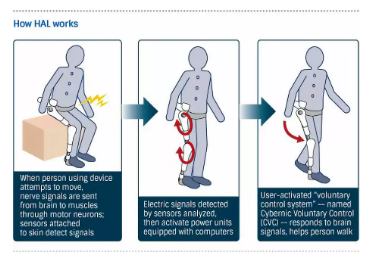 在這部科幻小說的啟發(fā)下,美國和日本在1960年后分別開啟了機械外骨骼的研究。美國由軍方主導研發(fā),日本則直接從外骨骼的商業(yè)用途入手,關注幫助殘疾人和老年人進行日常生活和生活(散步、爬樓梯、負載等)。