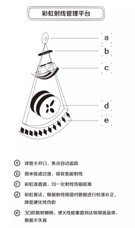 b、動態(tài)三維變焦球管---8MHU飛焦點(diǎn)金屬球管,配合全息微晶元探測器實(shí)現(xiàn)221184有效采樣通道,降低偽影,獲得全息高清數(shù)據(jù)影像。
