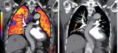 相比傳統(tǒng)成像方式,肺部柔性減影技術(shù)通過人工智能,對平掃數(shù)據(jù)和CT肺動(dòng)脈血管掃描數(shù)據(jù)進(jìn)行智能比對,解碼并識(shí)別各個(gè)器官(肺、氣管、肺動(dòng)脈、肺靜脈、主動(dòng)脈等)的空間位置,并在三維空間中進(jìn)行體素級(jí)的柔性配準(zhǔn),從而極大提升了不同序列數(shù)據(jù)的空間位置的一致性。通過肺部柔性減影技術(shù)可得到肺強(qiáng)化碘圖,可以顯示出傳統(tǒng)CTPA圖像看不到的小栓塞病變,提高了栓塞檢出率,其結(jié)果甚至可與SPECT吻合。