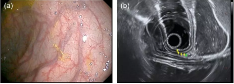 在系統(tǒng)層面,EG-UR5可搭配開立醫(yī)療全高清電子內(nèi)鏡系統(tǒng)HD-550和的超聲系統(tǒng)S60,為上消化道病變性質(zhì)診斷提供優(yōu)異的光學(xué)圖像和超聲圖像(圖3)。HD-550內(nèi)鏡系統(tǒng)搭載了國(guó)產(chǎn)首臺(tái)雙波長(zhǎng)LED復(fù)合的內(nèi)窺鏡冷光源VLS-50T,不僅能夠提供高亮度白光觀察,還支持聚譜成像(SFI)和光電復(fù)合染色成像(VIST)兩種特殊光觀察模式。S60超聲系統(tǒng)除了支持常規(guī)超聲掃查模式,還提供彈性成像、造影成像等成像模式。