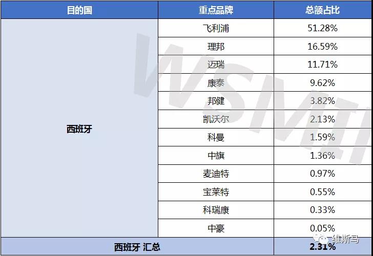 西班牙市場為中國心電圖出口第十大市場,共計12家出口商,占全年心電圖出口2.31%的份額。其中飛利浦在西班牙市場的占有率高達51.28%。