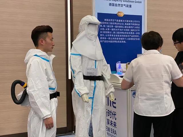 今天的對(duì)接會(huì)上,醫(yī)療器械及醫(yī)藥保健展區(qū)部分展品精彩“劇透”。德國(guó)自然空氣能量解決方案有限公司帶來(lái)了一款多合一醫(yī)用個(gè)人防護(hù)系統(tǒng),該產(chǎn)品將在第三屆進(jìn)博會(huì)上正式全球首發(fā)。