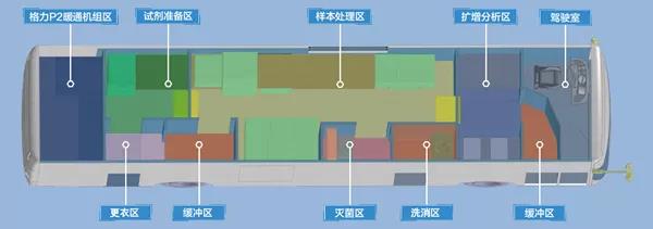 據(jù)公告顯示,圣湘生物移動(dòng)P2+核酸檢測車長12米,按照生物安全二級(jí)以上(P2+)實(shí)驗(yàn)室標(biāo)準(zhǔn)打造,設(shè)置了試劑準(zhǔn)備區(qū)、樣本處理區(qū)、擴(kuò)增分析區(qū)和滅菌區(qū)等四個(gè)主要區(qū)域。單臺(tái)車的檢測能力可達(dá)5萬人份/天(10混1),突破了以往檢測車的人次上限,并且可以隨到隨檢,大大縮短了民眾到醫(yī)院或核酸檢測點(diǎn)的距離,減少了就診過程中對(duì)人群的接觸。