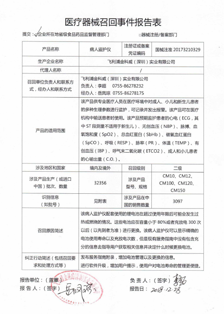二級(jí)!飛利浦主動(dòng)召回33982臺(tái)病人監(jiān)護(hù)儀、2650臺(tái)心電圖機(jī)!