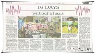 9.這是另外一個(gè)案例,報(bào)紙寫“全球首例,臺(tái)灣奇跡,男無(wú)心臟活16天”。