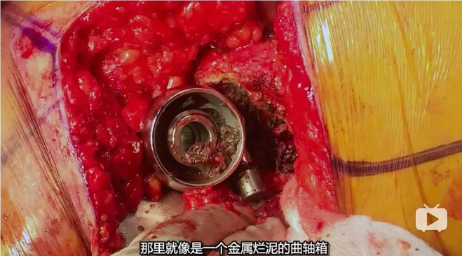 Tower 立刻進(jìn)行了髖關(guān)節(jié)重置,在重置手術(shù)的過(guò)程中,當(dāng)醫(yī)生取出原來(lái)的那塊假體時(shí),發(fā)現(xiàn)那里就像是一個(gè)金屬爛泥的曲軸箱,關(guān)鍵的韌帶——髖關(guān)節(jié)囊已經(jīng)溶解了。
