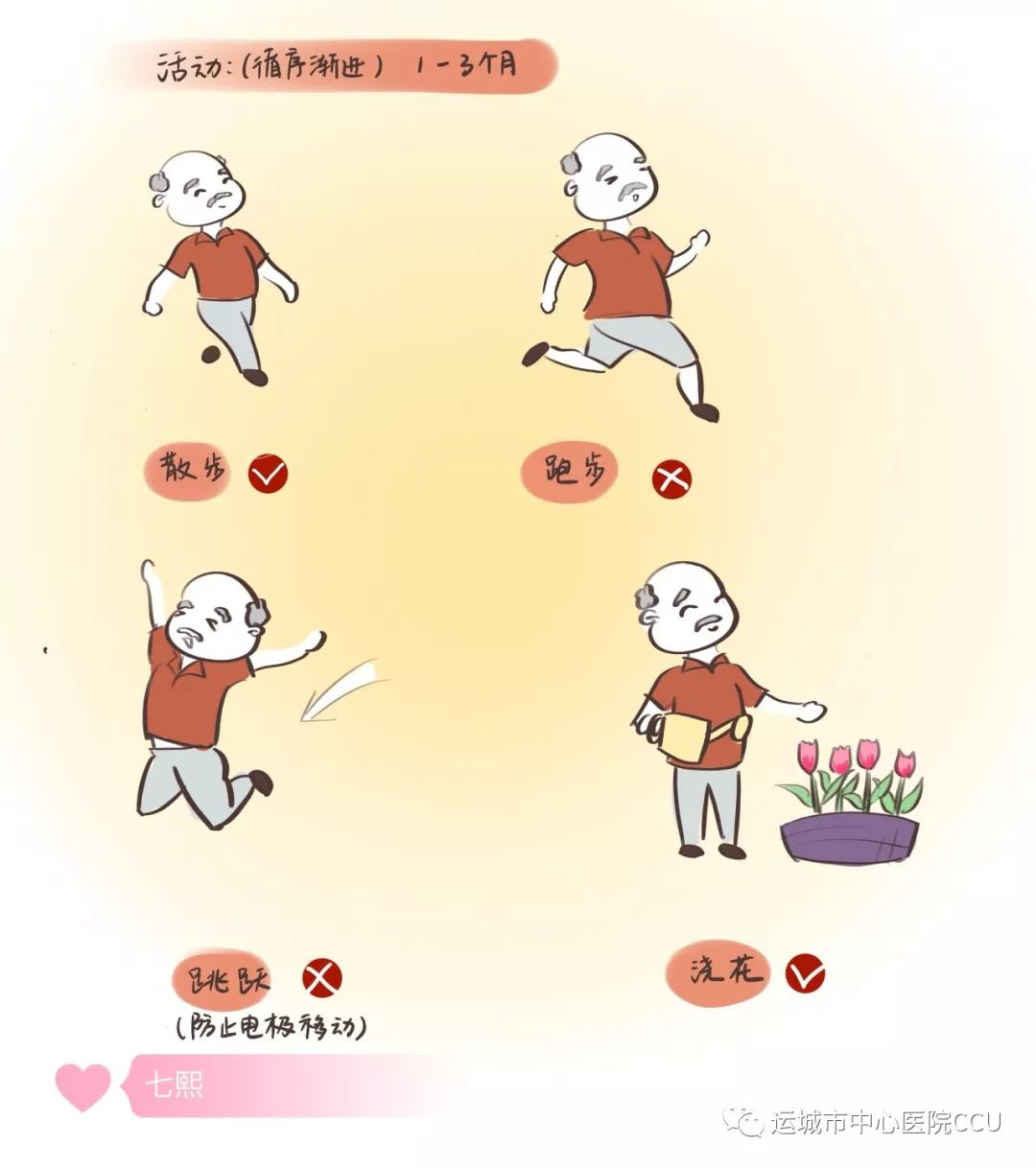 出院后1--3個月,活動應循序漸進,防止電極移位。